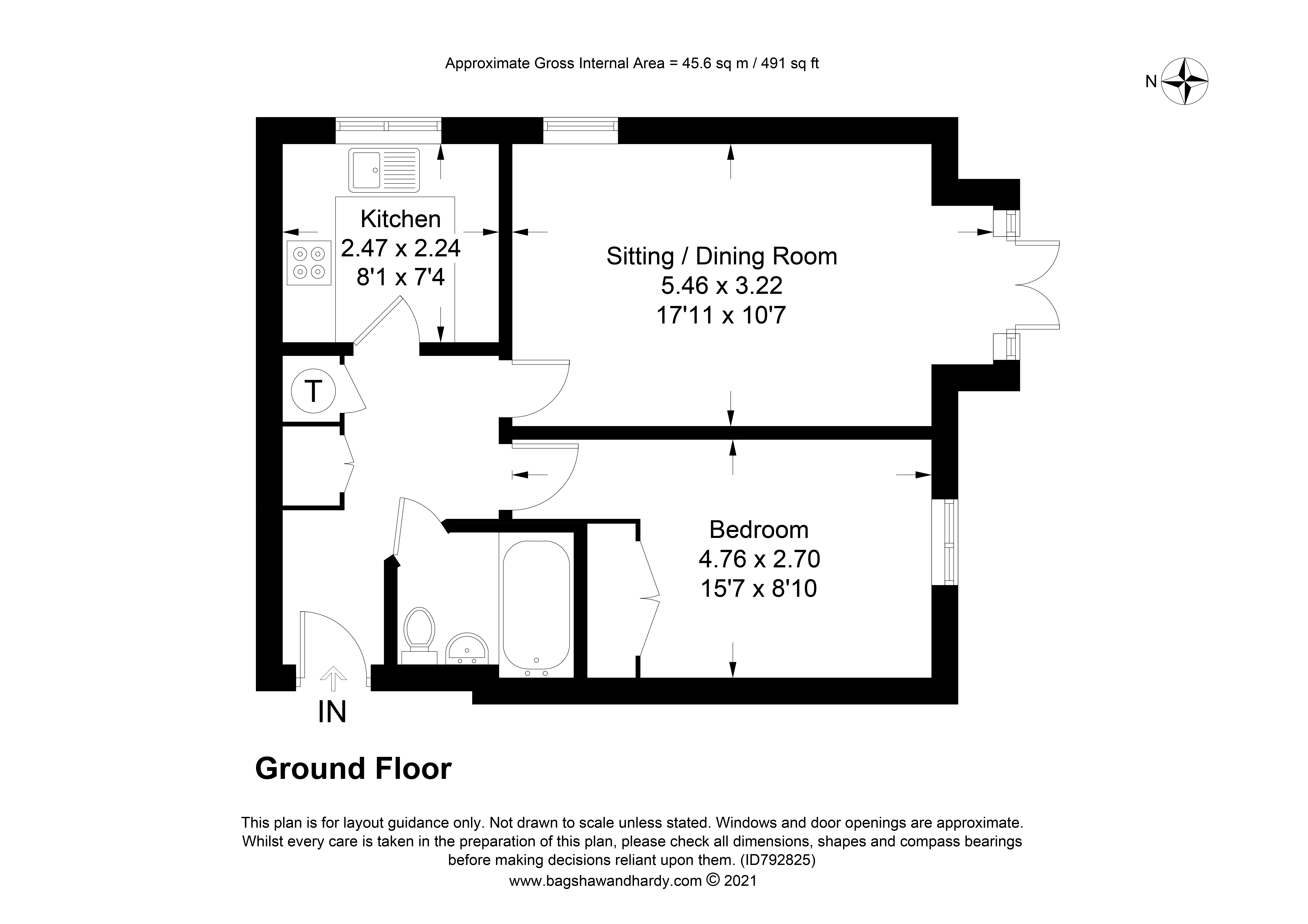 This one bedroom apartment gives you 491 sq.ft of living accommodation and is situated at the rear of the building with direct access to the communal garden via double doors from the living room.