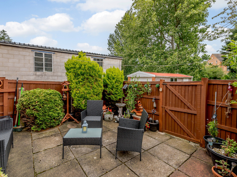 Garden Fence: Wood Fencing Panels to three sides at rear, low wall to front of the property