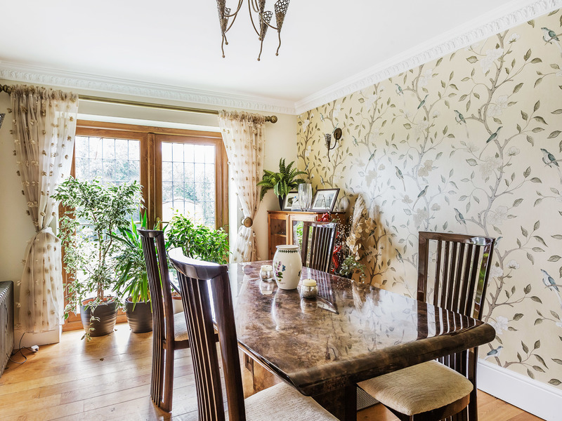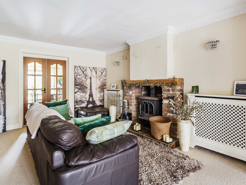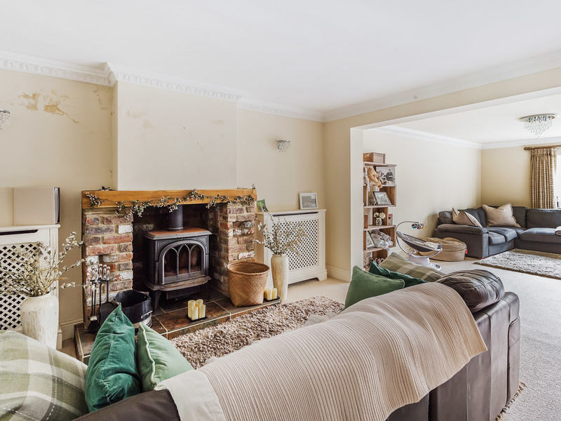 Beautifully light and bright, a spacious sitting room produces a marvellous introduction to this Cansiron Lane home. Its generous dimensions offer an exemplary amount of space in which to relax and spend time together as a family, with a focal point log burner that sits beneath the timber mantel of an exposed brick fireplace. Allowing you to create one large open plan arrangement, elegant double doors open onto the adjoining dining room with an oak floor and feature patterns. A gunmetal column radiator is a considered finishing touch and leaded French doors open out onto the patio making this a great place to entertain.
