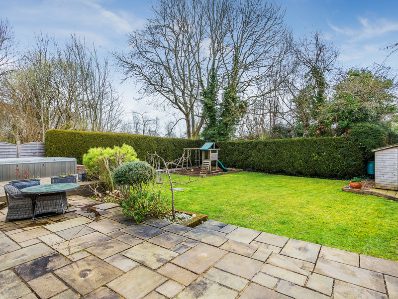 Step out from the ground floor onto the outstanding broad paved patio and raised decked terrace that stretch out across the full width of the house producing an abundance of opportunity to enjoy outdoor meals with family and friends or simply sit back and relax in the sun. Sitting on top of the attractive 'aged oak' composite decking with its anti-slip finish, a 19ft Hydropool Aqua Trainer swim spa with power jets is a marvellous added extra. Bordered by statuesque hedging and firs, this extensive garden enjoys a notable amount of privacy and seclusion. An established large lawn supplies an idyllic place for children to play, and a timber shed has a log store and storage for bikes and garden furniture.