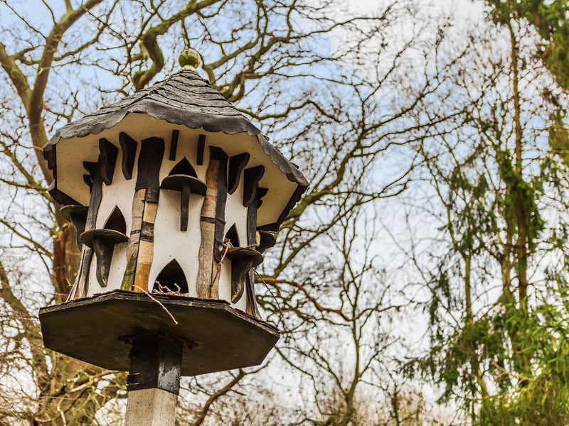 Pevsner mentions the roof massing - “big and tile hung with a complex pattern of gables” The well head in the photo is also separately listed with Historic England.