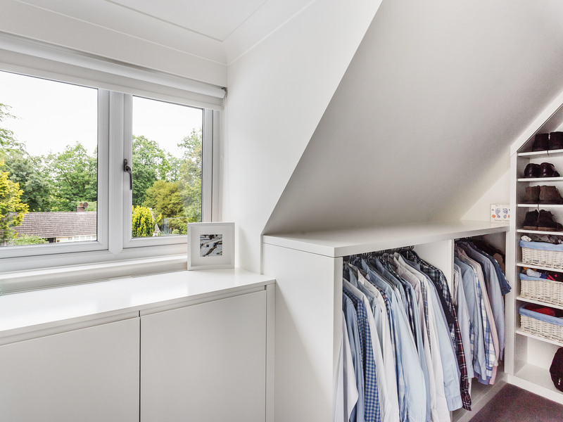 There are fitted Pro-Line units in every room, including a large full-length shoe cupboard on the landing.