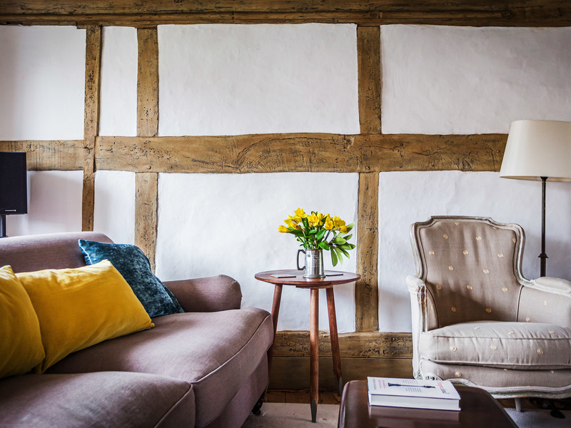 Beautifully lit by a duo of leaded windows that look out onto the surrounding greenery, the magnificent inglenook fireplace, exposed beams and timber framed walls of the spacious sitting room supply an instant wow factor. The cast iron chimney hood of the working fireplace provides a wonderful focal point to a room that has a generous amount of space to relax and spend time together as a family. Crisp white walls enhance the sense of space, while French doors open onto a study that in turn makes it easy to step out into the simply stunning gardens.