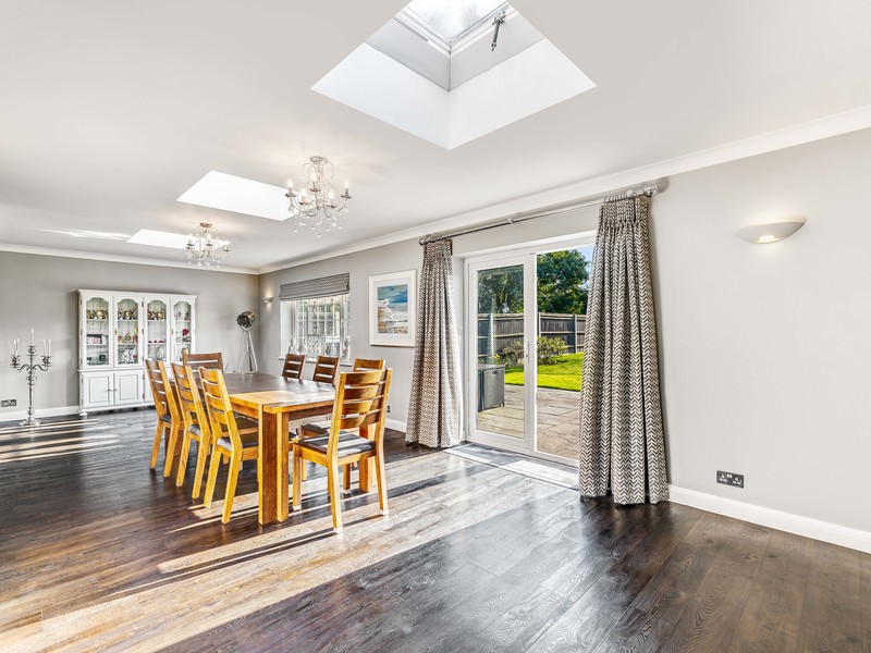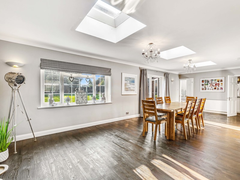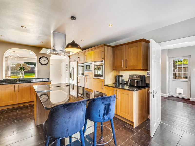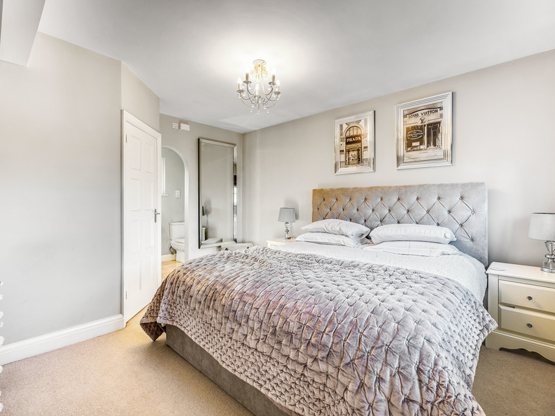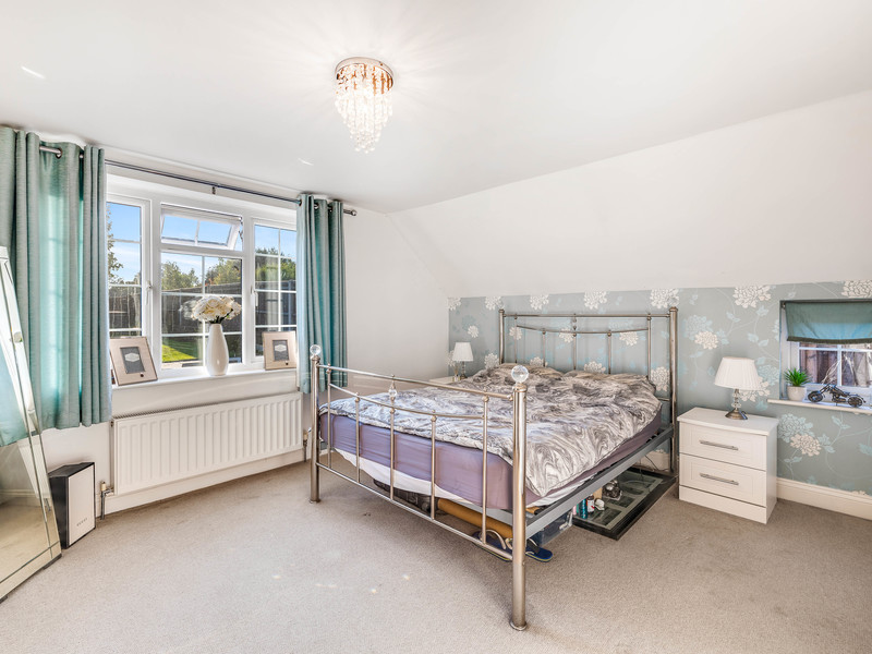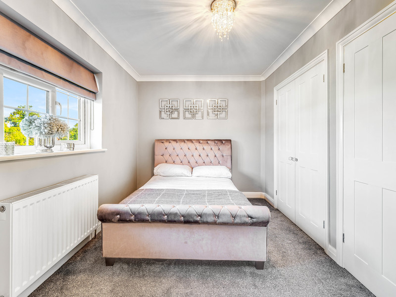 Upstairs, the property offers four more well-sized bedrooms. The principal bedroom suite is a serene retreat, complete with fitted wardrobes and a luxurious en-suite. All bedrooms offer ample storage, with additional built-in wardrobes in bedrooms three and four.